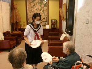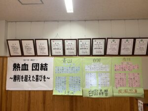 委員会活動(09/26) 2025年9月25日 学校生活 前期の生徒会活動は9月30日までです。先日、生徒会引継式を行いましたが、委員会活動も振り返りを行いました。各委員会の活動の様子が掲示にも表れています。また、ボランティア委員会は福寿園にメッセージを書いたうちわを贈呈しました。後期も引き続き頑張ります。