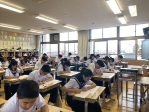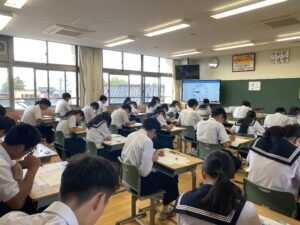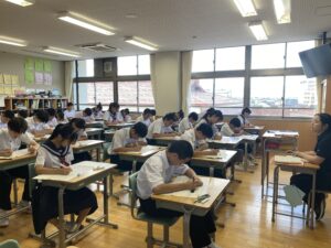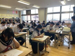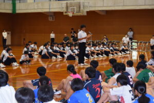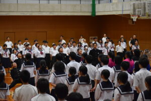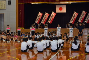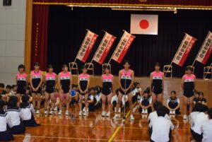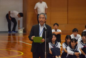 壮行会(10/02) 2025年10月2日 学校生活 各部の代表が、全日本吹奏楽コンクール、中部日本吹奏楽コンクール、富山県中学校駅伝競走大会、砺波地区新人大会、富山県少年なぎなた錬成大会等、各種大会に向けての意気込みを述べました。また、1、2年生の新体制での活動の抱負や目標などを述べました。 3年生の応援団から、気持ちの入った力強い応援、校長先生や生徒会長から活躍を祈念する言葉があり、選手たちは気持ちが高まったようです。今後の活躍を期待しています。