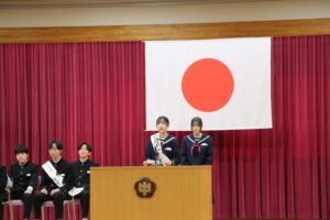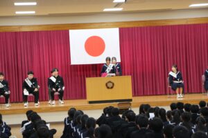 令和8年度前期生徒会役員選挙(01/15) 2026年1月15日 学校生活 来年度の前期生徒会の役員を決めるための立会演説会、投票を行いました。これまでも、選挙運動や政見放送などでも自分の思いを伝えてきました。今日の演説会では、候補者は、目指す福野中の姿に向けて、公約を力強く伝えました。