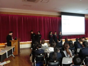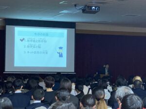 入学説明会🌸(02/06) 2026年2月6日 学校生活 来年度の新入生を対象に、入学説明会を行いました。はじめに富山大学大学院准教授の山田正明先生から「医師からみた子供のネット依存」と題して講演をしていただきました。その後、説明会では、1年生が中学校生活について説明しました。また、教育活動の特色や入学に向けての準備についてお話ししました。入学を楽しみにしています。