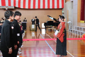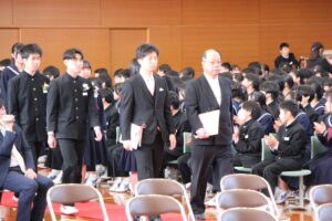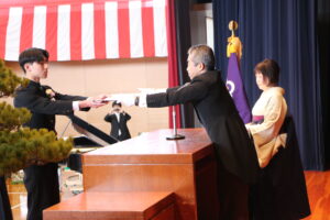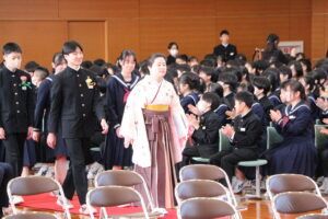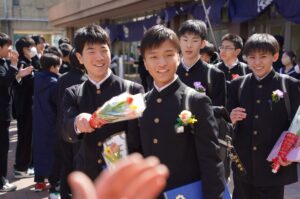 ㊗卒業証書授与式(03/12) 2026年3月12日 学校生活 本日、111名の生徒が福野中学校を巣立っていきました。卒業証書授与式では、呼名に大きな返事をし、校長先生から卒業証書を受け取りました。どの生徒も凛々しく立派な姿で、感動の卒業式となりました。今後の活躍を期待しています。 ご来校くださった来賓の皆様、保護者の皆様、ありがとうございました。