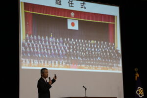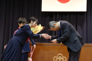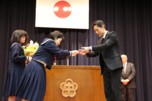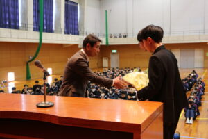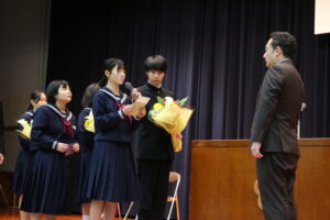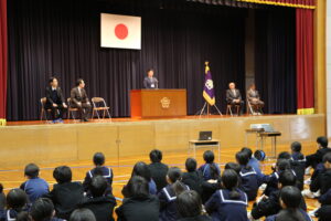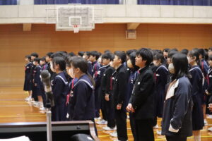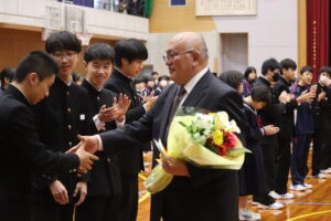 退任式・離任式を行いました。校長先生が退任される他、8名の先生方が異動されることになりました。先生方の話を聞き、感謝の気持ちを伝えました。