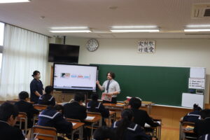 1年生 英語(4/27) 2026年4月27日 学校生活 1年生の英語の授業では、文の基本となる『主語+動詞』の語順について学習しています。生徒たちは、正しい語順を意識しながら、一生懸命に学習に取り組んでいました。
