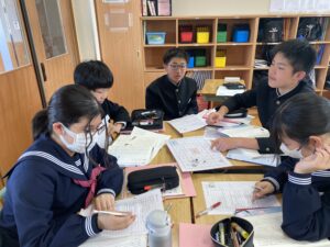 3年生 国語「握手」(04/28) 2026年4月28日 学校生活 3年生の国語では、井上ひさしさんの「握手」の話を読んで学習を進めています。作品の展開を踏まえて人物像を捉え、その生き方について考えを深めていきます。