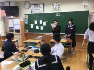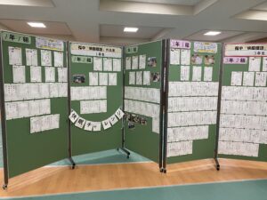 先週から、快眠チャレンジ週間に向けて、快眠チャレンジの標語を考えました。本日から、お昼の放送で各学級から選ばれた優秀作品を紹介しています。玄関ホールに、全員の作品を展示しています。快眠チャレンジは13日から17日まで行います。