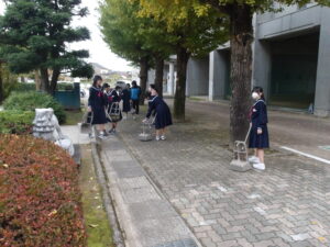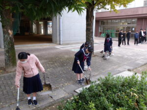 朝から、自発的に前庭の落ち葉を掃いていました。おかげで、美しくなりました。