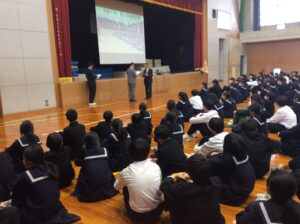 地震を想定した避難訓練を実施しました。9月に行った「シェイクアウト訓練」を思い出し、「①まず低く、②頭を守り、③動かない」を意識して行動するしました。避難後、校長先生のお話を聞き、学級で振り返りをしました。