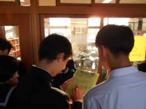 毎週水曜に各学級で行っているふれあいタイムを、今回は全校で行いました。執行部が企画し、全校でクイズラリーをしました。各学年から2名ずつ、計6名のグループを作り、18個のクイズに挑戦しました。互いの考えを聞きながら、協力して取り組んでいました。