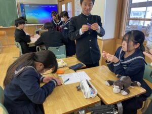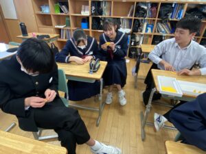 2年生は、来年度の修学旅行で平和記念公園を訪問することに合わせて、平和学習をしています。原爆のことや佐々木禎子さんの折り鶴に込めた願いなどについて学んでおり、今日は、折り鶴を折りました。