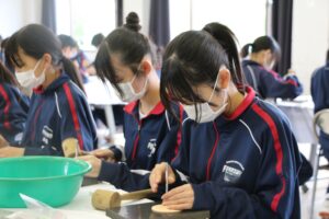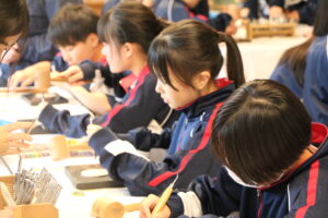 1年生は、 砺波青少年自然の家へ校外学習に行きました。イニシアティブゲームでは、班のメンバーと協力しながらさまざまな課題に挑戦し、生徒同士の親睦を深めました。レザークラフト体験ではコースター作りに取り組み、それぞれが自分の好きな模様を刻み、楽しんで活動しました。